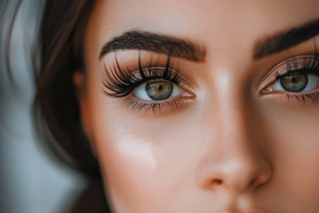 Dramatic shot of a beautiful woman eyes looking at camera long artificial lashes