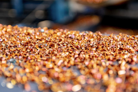 Beautiful multicolored metal shavings. soft focus. close-up