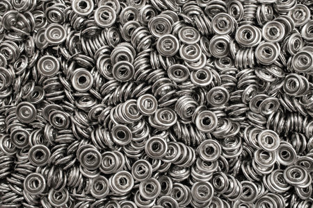 Metal eyelets for sewing. Grommets for clothes. Silver Metal background texture. close up