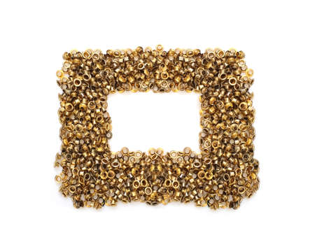 Spilled gold grommets isolated on white background