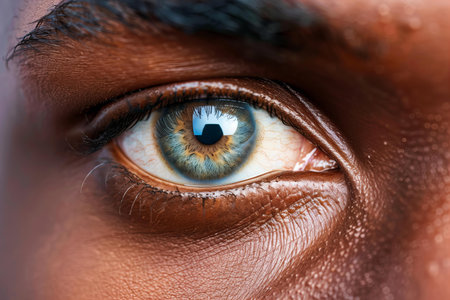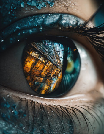 This stunning close-up captures the intricate details of a human eye, showcasing the rich colors and reflections that convey deep emotion and clarity.