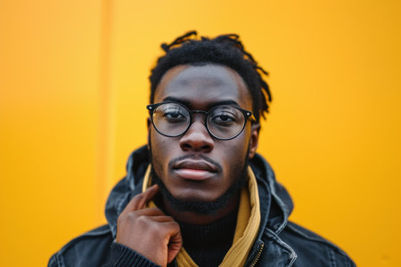 Young man in a yellow shirt stands against a yellow background with soft studio lighting, a calm expression, clean composition, and casual fashion for lifestyle use