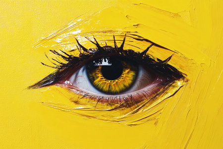This striking illustration features a detailed eye set against a vibrant yellow background, creating a stunning visual impact. The art captures emotion and depth.