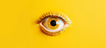 Woman's eye with yellow pupil on yellow background, ophthalmologist's day, generative AI
