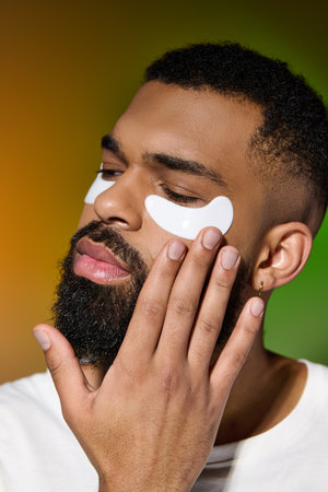 African american handsome man using eye patches.