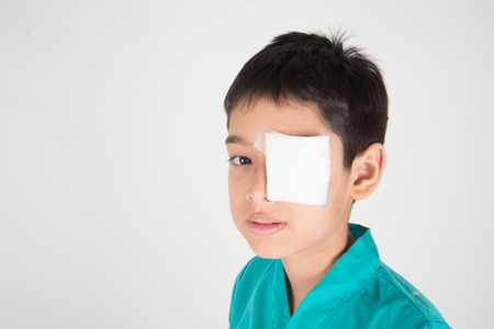 Little boy has eyes pain use bandage to cover