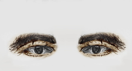 Hand Drawn And Painted Human Eyes Of A Old Man With Thick Eyebrows - Pencil Sketch And Coloring By Hand