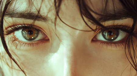 Close-up of a young woman's eyes looking at the camera. generated by AI