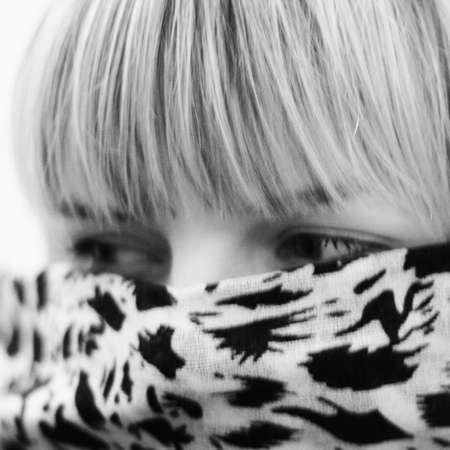 A closeup of a face with a smattering of freckles the sunlight casting shadows through the window. Black and white art.
