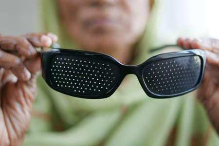 Black punched eyeglasses for vision training. perforated glasses trainer