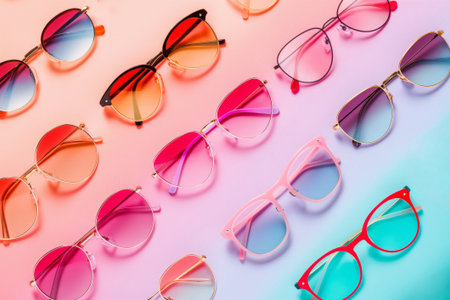 colorful pile of different eye glasses, abstract modern pattern, elegant background