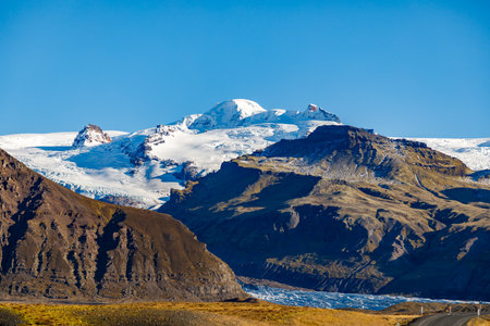 Beautiful scenic landscape with mountains and Svinafellsjokull Glacier, Iceland
