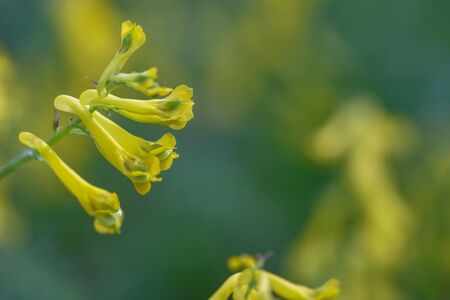 Macro shot of yellow corydalis (pseudofumaria lutea) flowers in bloom