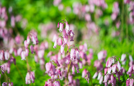 Nature background with tender pink Aquilegia Vulgaris flowers