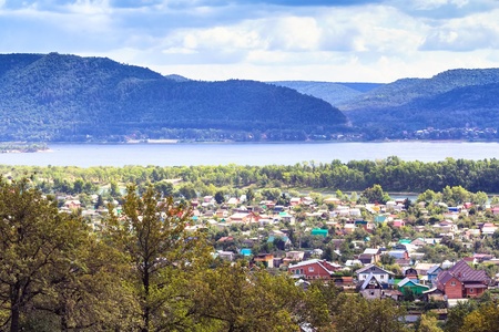 Top view of the village of Shiryaevo, Samara region in summer, Russia