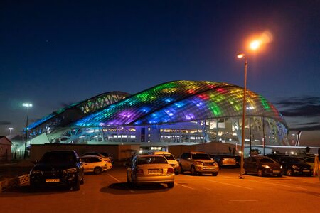 Sochi, Russia - June 9, 2018: Night landscape overlooking the glowing colorful flowers of the stadium Fisht.