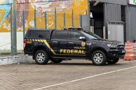 Salvador, Bahia, Brazil - October 08, 2023: Ford federal police car, parked at the sea port of the city of Salvador, Bahia.