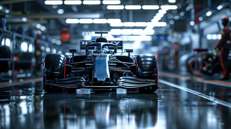 High octane formula 1 pit stop maintenance with swift team performing car maintenance