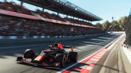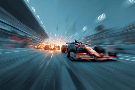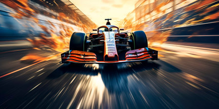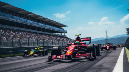 formula 1 race track, with cars speeding past the camera on an adrenaline-filled race, created with generative ai