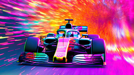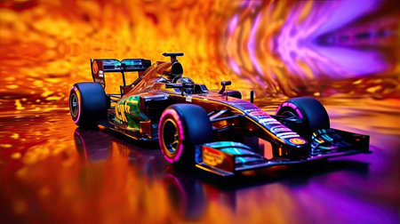 Cinematic formula one car on colorful tones,movie like scene,fast race track concept,pole position