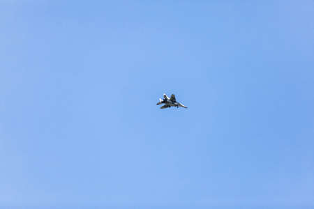 Krasnodar, Russia - February 23, 2017: Air show in the sky above the Krasnodar airport flight school. Airshow in honor of Defender of the Fatherland. MiG-29 in the sky.