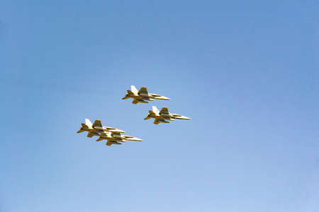 MOSCOW, RUSSIA - MAY 4, 2018: A group of airplane. Rehearsal of parade devoted to May 9, Victory Day in World War II. May 4, 2018 in Moscow.