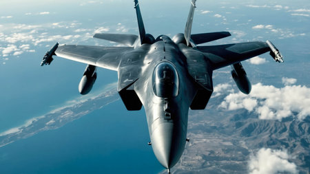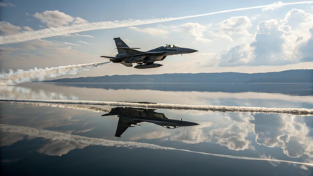 A powerful fighter jet taking off from a runway with great speed, showcasing advanced military aviation technology
