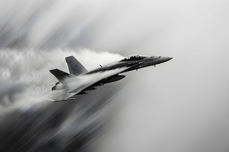 A dynamic image capturing a jet fighter piercing through the clouds, exemplifying the essence of supersonic speed and aerial agility.