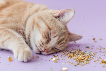 Peaceful Feline Amidst Golden Glitter