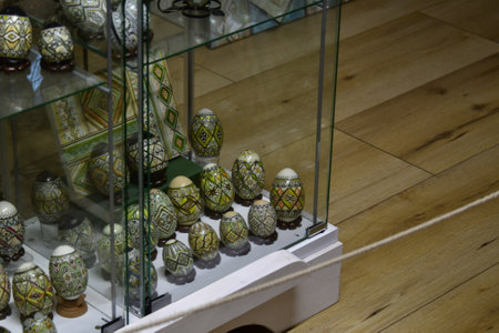Moscow, Russia, may 7, 2016, beautiful painted eggs on Easter icons