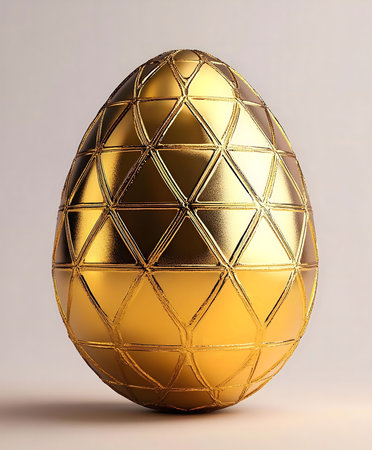 A luxurious golden egg with a geometric pattern, perfect for Easter celebrations.