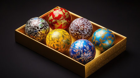 Ornately Decorated Eggs in an Elegant Bowl Celebrating Nowruz Traditions. Concept of Persian New Year, Cultural Heritage, Festive Celebrations.