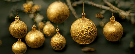 Gold Christmas ornaments banner, luxury Christmas baubles wallpaper, Xmas background