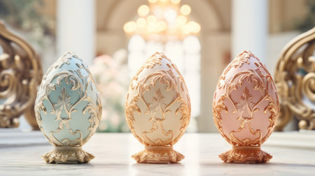 Robotic arm painting floral patterns on decorative easter eggs in elegant setting.