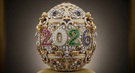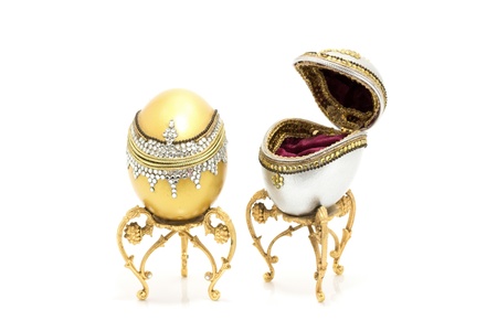 Decorated eggs (Faberge Eggs) at counter in jewelry store