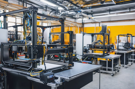 Advanced 3D Printing Machines in Modern Workshop. Generative AI.