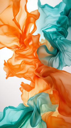 Abstract Fluid Motion of Orange and Teal Wavy Fabric Against White Background