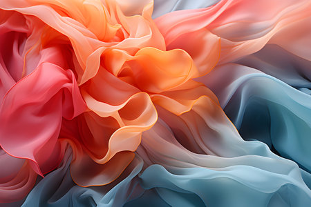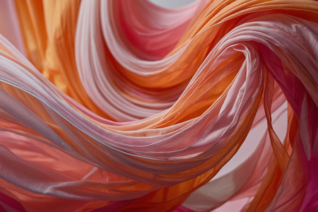 Abstract pink and orange flowing fabric against a soft gradient background, fluid motion and elegance concept