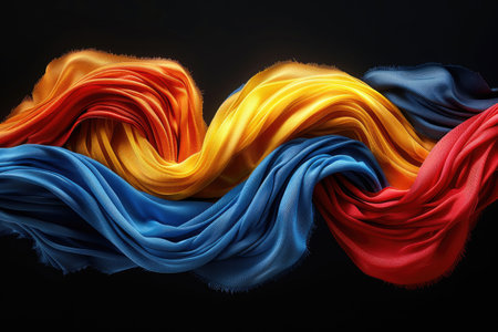A vibrant and colorful flowing fabric texture with soft gradients creates a serene backdrop. Perfect for artistic projects or design elements.