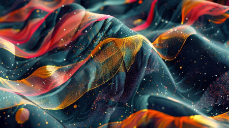 Vibrant and colorful textile pattern with dynamic waves and shimmering light, evoking feelings of energy and movement. Perfect for inspiration and creativity. Generated A.I.