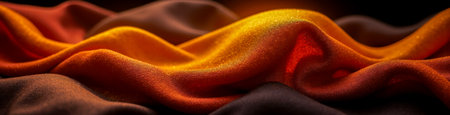 Closeup of shiny smooth satin material in fire colors with dramatic lighting, web background, textile design, elegance or cosmetic projects