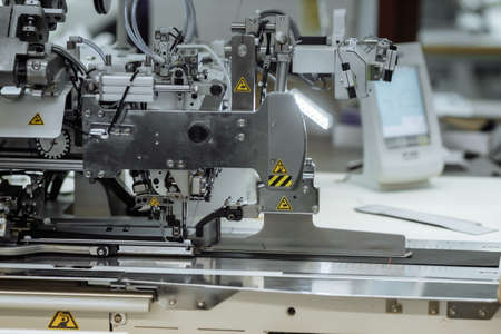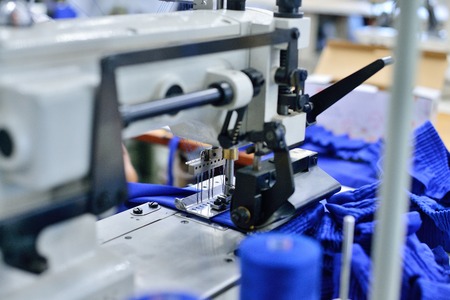 Production line of the sewing machine. Textile industry. Industrial background
