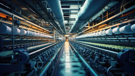 photo of inside textile factory line production view Photography AI Generated