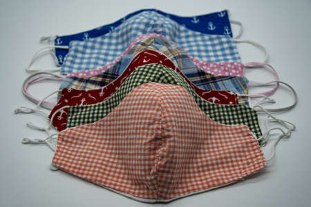 Colorful DIY fabric cotton medical masks on white background. Concept for protect from Covid-19,Coronavirus ,saliva, cough,cold,dust, pollution (PM2.5), respiratory disease,virus and bacteria.