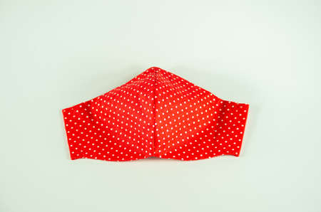 beautiful cotton face mask. Virus, Bacteria. DIY. Protective mask on red wood background