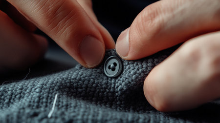 Woman's hands stitching button on a shirt in tailor shop, close up view