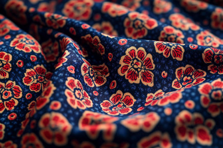 Flower print fabric close up background.
