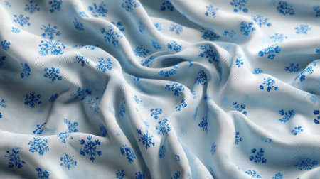 Undulating soft blue fabric adorned with delicate pink flowers and yellow accents, perfect for a gentle aesthetic. generative ai