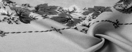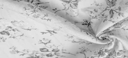 Background texture, Black and white silk fabric, silver. titanium. floral pattern, corrugation, reef, undulation, undulation, ripples, a small wave or a series of waves on the surface of the fabric,