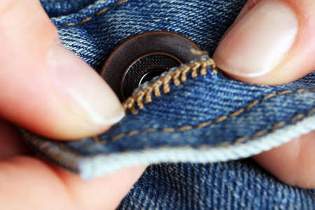 Detail of zipper on blue jeans. Macro with extremely shallow depth of field